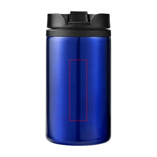 Doppelwandiger Becher mit Schraubdeckel und verriegelbarer Trinköffnung zum Aufklappen. Volumen 300 ml.