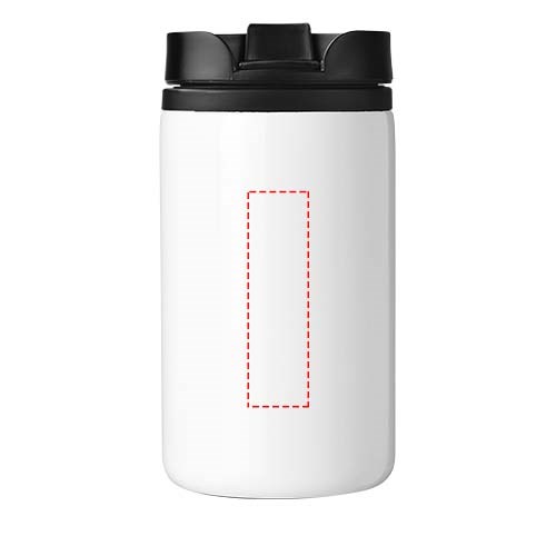 Doppelwandiger Becher mit Schraubdeckel und verriegelbarer Trinköffnung zum Aufklappen. Volumen 300 ml.