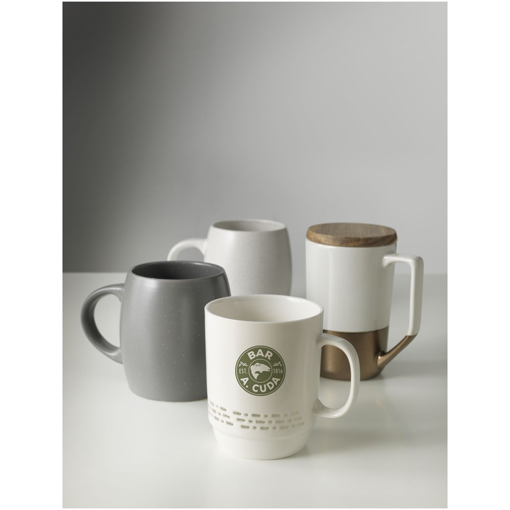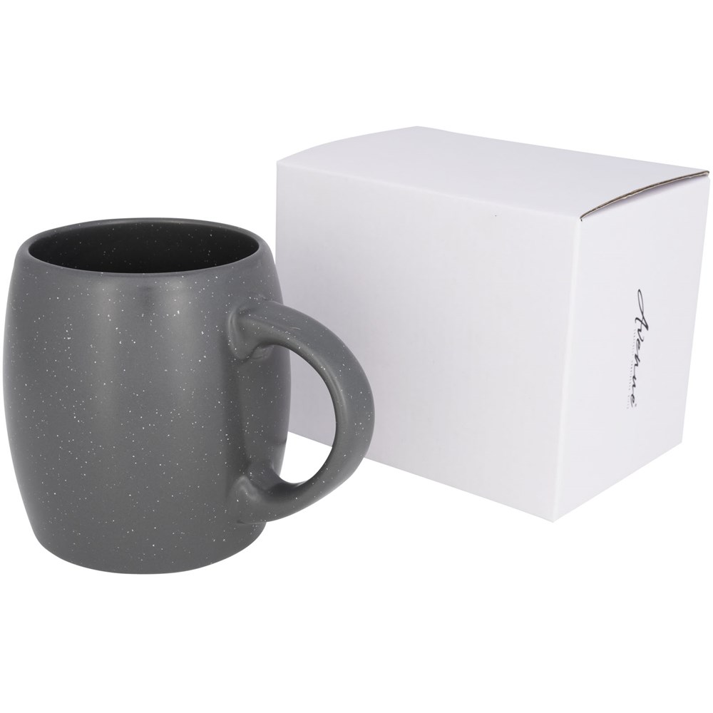 Bequeme Keramiktasse mit einer matten Ausführung und einem modernen Lagerfeuermuster. Spülmaschinenfest EN12875-1 konform (bei bis zu 125 Waschvorgängen) für alle Werbeanbringungsmethoden. Das Fassungsvermögen beträgt 520ml. Präsentiert in einer Avenue Geschenkschachtel.