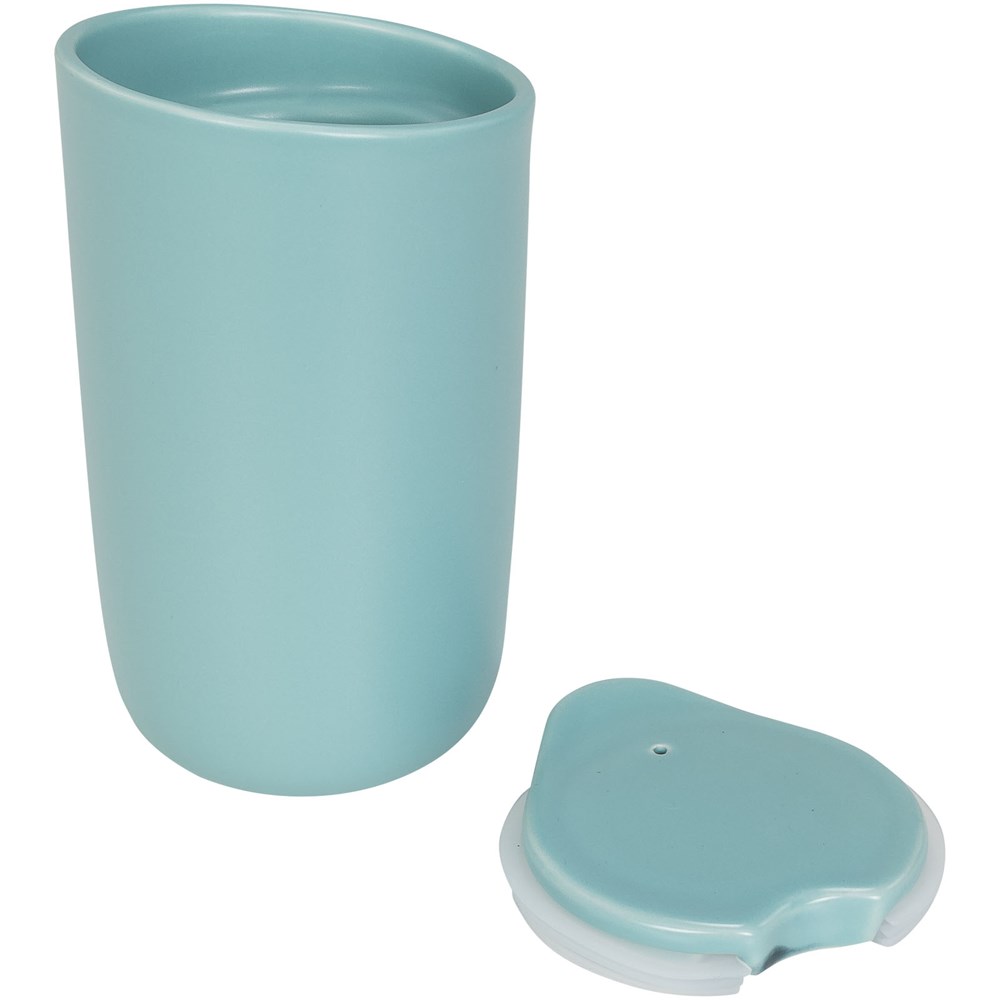 Schnuckeliger doppelwandiger Keramikbecher mit Keramikdeckel. Passt unter die meisten Kaffeemaschinen und ist mikrowellengeeignet. Entfernen Sie vor dem Stellen in die Mikrowelle die Silikondichtung am Keramikdeckel. Spülmaschinenfest EN12875-1 konform (bei bis zu 125 Waschvorgängen) für alle Werbeanbringungsmethoden. Fassungsvermögen 400ml. In einem Avenue-Geschenkkarton präsentiert.