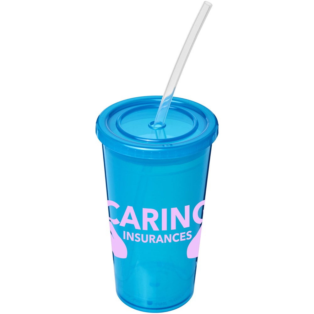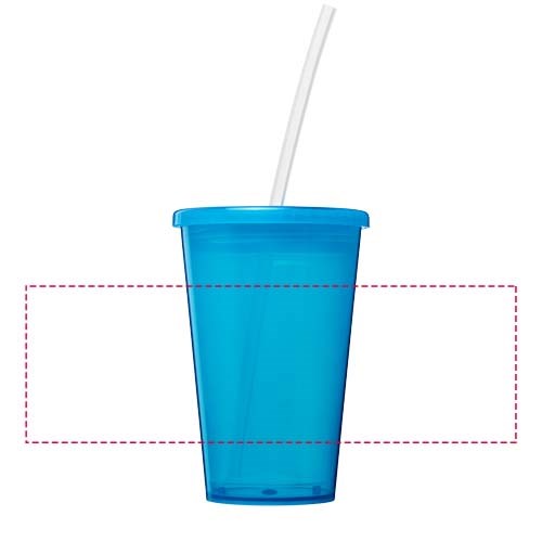 Doppelwandiger, lichtdurchlässiger Isolierbecher. Lieferung mit flexiblem Silikon-Strohhalm. Das Fassungsvermögen beträgt 350 ml. Hergestellt in Großbritannien.