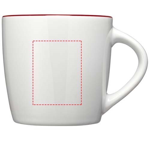 340 ml Tasse mit glänzender Außenoberfläche und farbigem Akzent innen. Spülmaschinenfest EN12875-1 konform (bei bis zu 125 Waschvorgängen) für alle Werbeanbringungsmethoden. Verpackt in weißer Geschenkbox.
