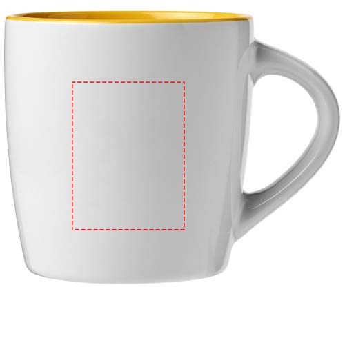 340 ml Tasse mit glänzender Außenoberfläche und farbigem Akzent innen. Spülmaschinenfest EN12875-1 konform (bei bis zu 125 Waschvorgängen) für alle Werbeanbringungsmethoden. Verpackt in weißer Geschenkbox.