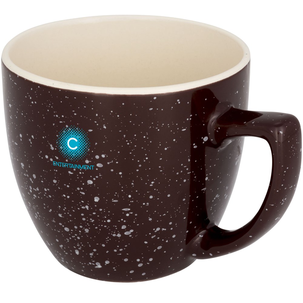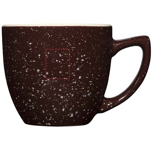 Keramik-Tasse mit einer topaktuellen, gesprenkelten Oberfläche. Spülmaschinenfest EN12875-1 konform (bei bis zu 125 Waschvorgängen) für alle Werbeanbringungsmethoden. Das Fassungsvermögen beträgt 325ml. Wird in einem weißen Karton präsentiert.