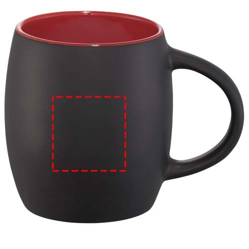 Keramikbecher mit matter Oberfläche und Unsersetzer aus Holz. Spülmaschinenfest EN12875-1 konform (bei bis zu 125 Waschvorgängen) für alle Werbeanbringungsmethoden. Volumen 400 ml. Verpackt in einer Avenue Geschenkbox.