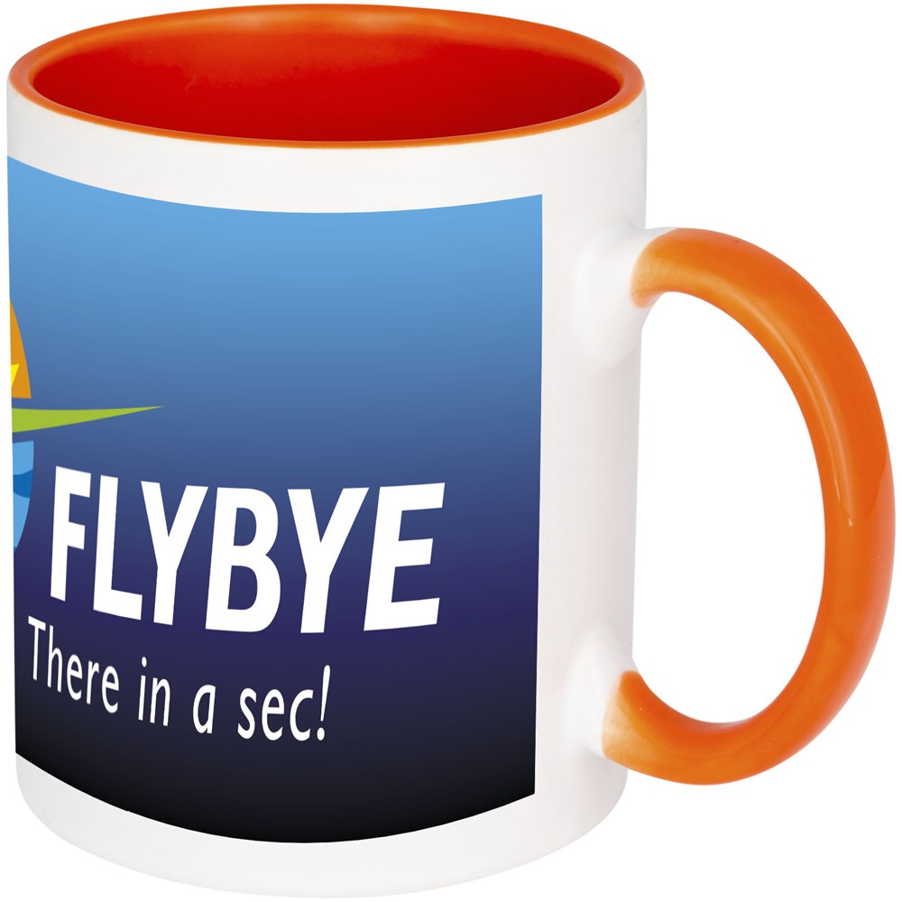 Dieser Keramikbecher in klassischem Design verfügt über eine spezielle Beschichtung für Sublimation. Der Becher hat eine farbige Innenseite mit Griff in passender Farbe. Spülmaschinenfest EN12875-1 konform (bei bis zu 125 Waschvorgängen) für alle Werbeanbringungsmethoden. Das Fassungsvermögen beträgt 330 ml. Präsentiert in einer weißen Pappschachtel.