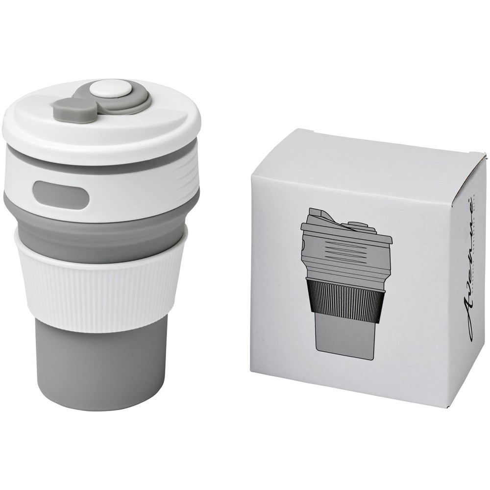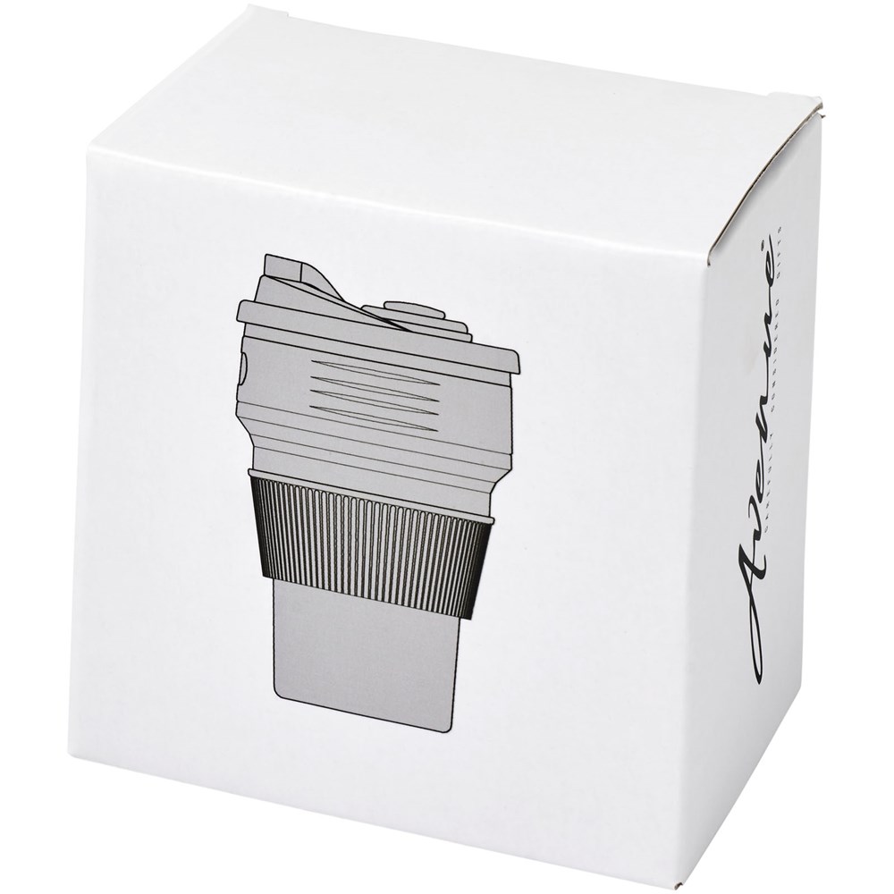 Tragbarer, flexibler und leicht zu reinigender Becher. Kompakt und geeignet für den Außenbereich oder auf Reisen. Der Becher lässt sich zu einem Bruchteil der vollen Größe zusammenklappen, was ihn zum perfekten Artikel für Unterwegs macht, v. a. wenn der Platz knapp ist. Die Silikonteile sind mikrowellen- und spülmaschinenfest, nicht aber die Kunststoffteile. Das Fassungsvermögen beträgt 350 ml. Präsentiert in einer Avenue-Geschenkschachtel.