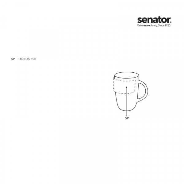 senator® Pics Elite Tasse, Konische Steinzeugtasse in elegantem Design, hochglänzend weiß, inklusive Sublimationsdruck, Abmessungen Höhe: ca. 100 mm, Durchmesser: ca. 82 mm, Füllmenge: ca. 0,25 l