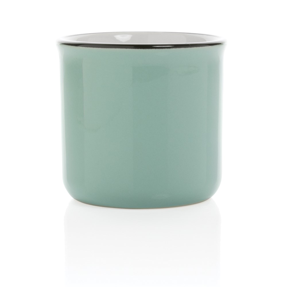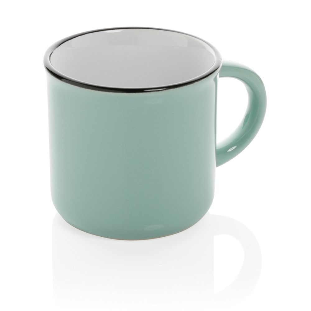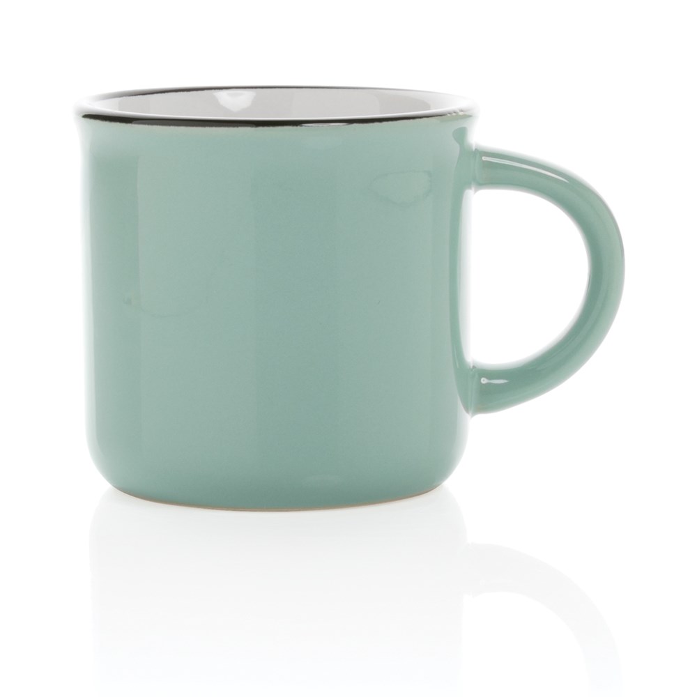 Dieser Becher, aus Keramik hergestellt, steht für Haltbarkeit und dauerhafte Verwendung. Der Becher hat einen Vintage-Look und einen gebogenen Henkel für einen angenehmen Halt. Spülmaschinenfest gemäß EN12875-1 (mindestens 125 Waschzyklen) für alle Dekorationsmethoden. In Geschenkbox verpackt. Kapazität 280ml.