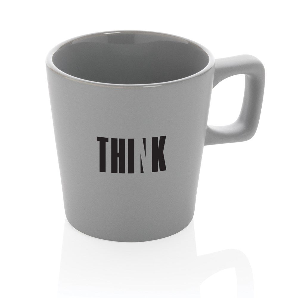 Dieser Keramikbecher sieht auf jedem Schreibtisch gut aus. Der Becher hat ein glänzendes Innenfinish und ein mattes Außenfinish. Der Becher ist spülmaschinenfest und gemäß EN12875-1 (mindestens 125 Waschzyklen) für alle Dekorationsmethoden geprüft. Verpackt in einer Geschenkbox. Kapazität 300ml.