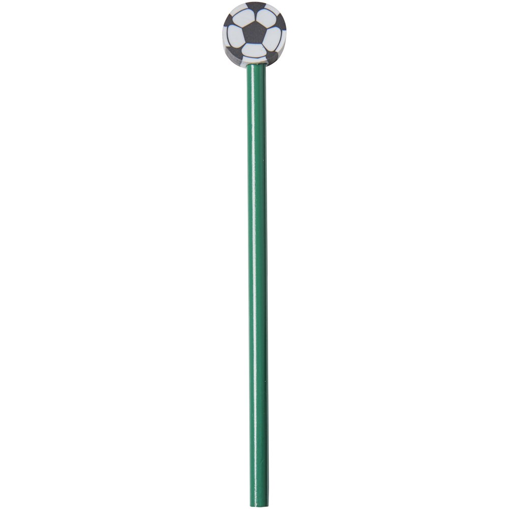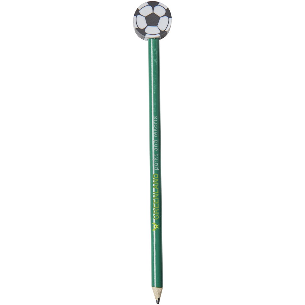 Hölzerner Bleistift mit fußballförmigem Radiergummi. mehr