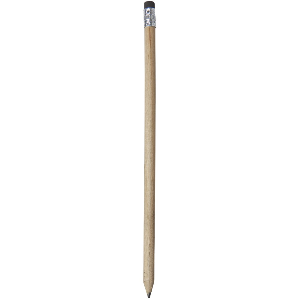 Hölzerner Bleistift mit natürlichem Schaft und farbigem Radiergummi. Nicht angespitzt. mehr