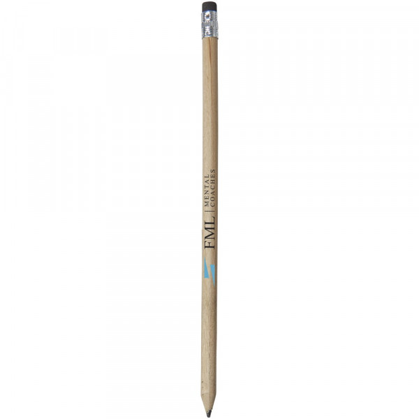 Hölzerner Bleistift mit natürlichem Schaft und farbigem Radiergummi. Nicht angespitzt.