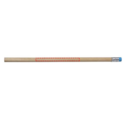 Hölzerner Bleistift mit natürlichem Schaft und farbigem Radiergummi. Nicht angespitzt. mehr