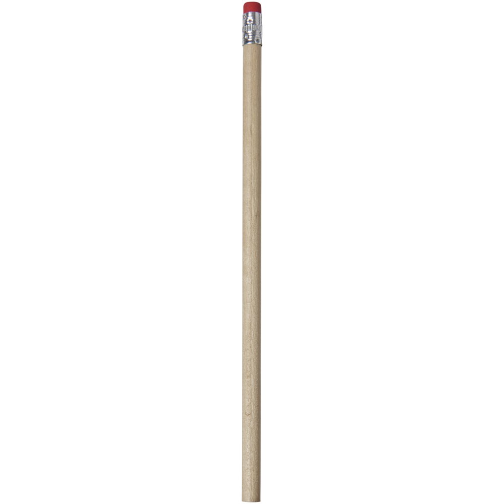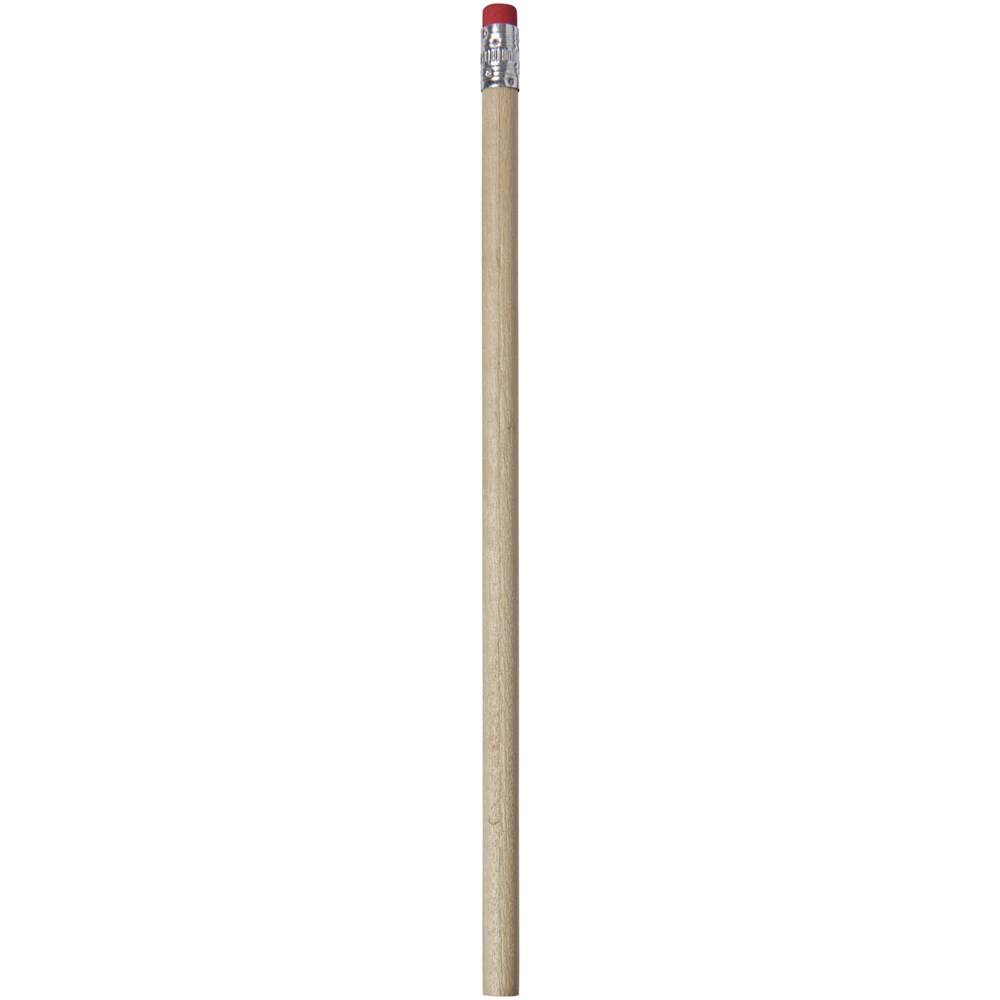 Hölzerner Bleistift mit natürlichem Schaft und farbigem Radiergummi. Nicht angespitzt. mehr