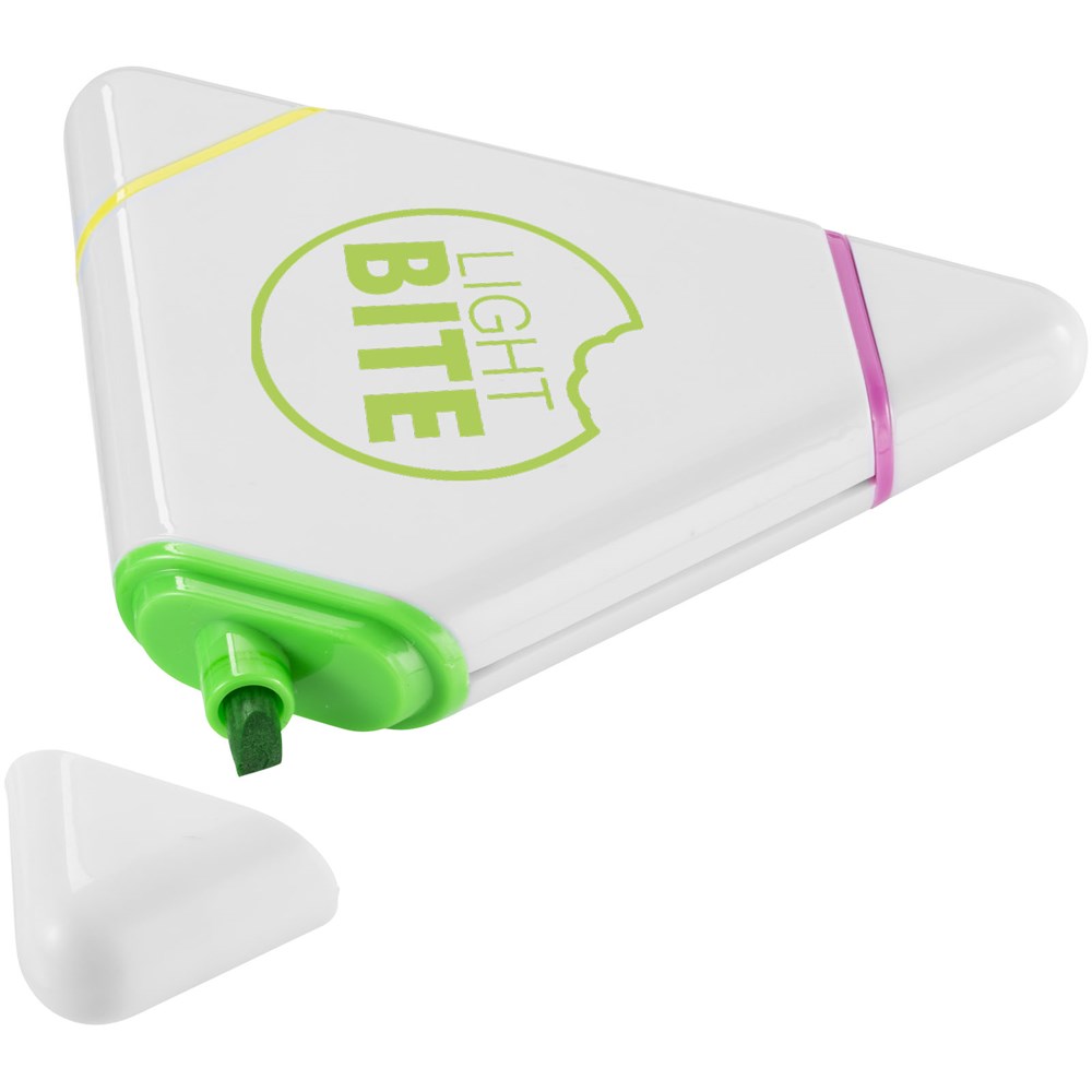 Dreieckiger Marker mit Keilspitze in Gelb, Pink und Grün. mehr