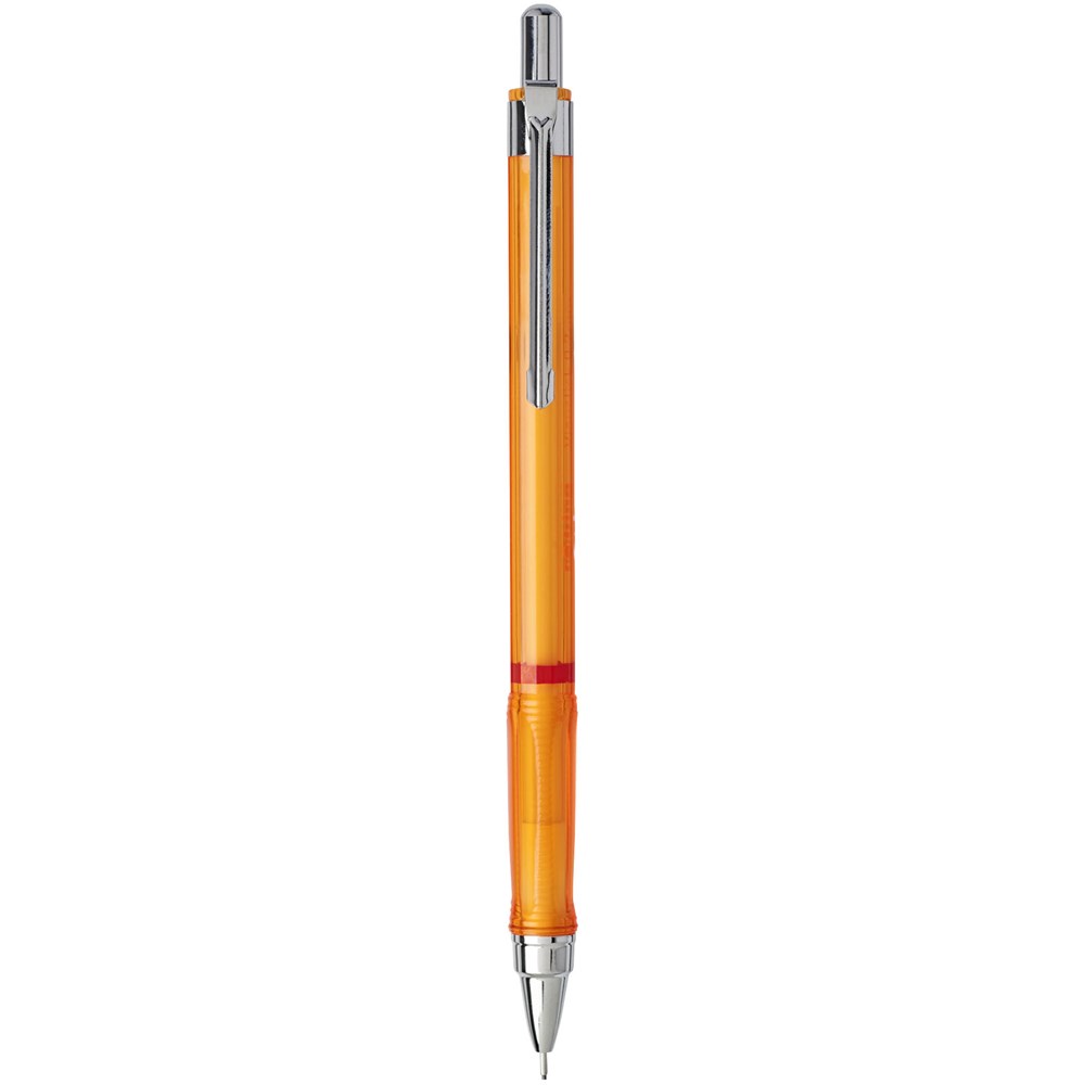 Druckbleistift zum dynamischen Schreiben und Skizzieren. Ausgestattet mit einem Metallmechanismus mit einziehbarer Mine. Dreieckiger Griff für bequemes Gefühl. Einziehbare Spitze und verfügt über hochpolymere 2B-Minen. Spitzengröße: 0,5 mm.