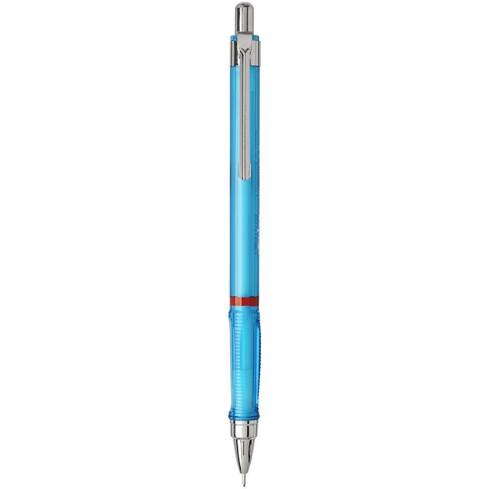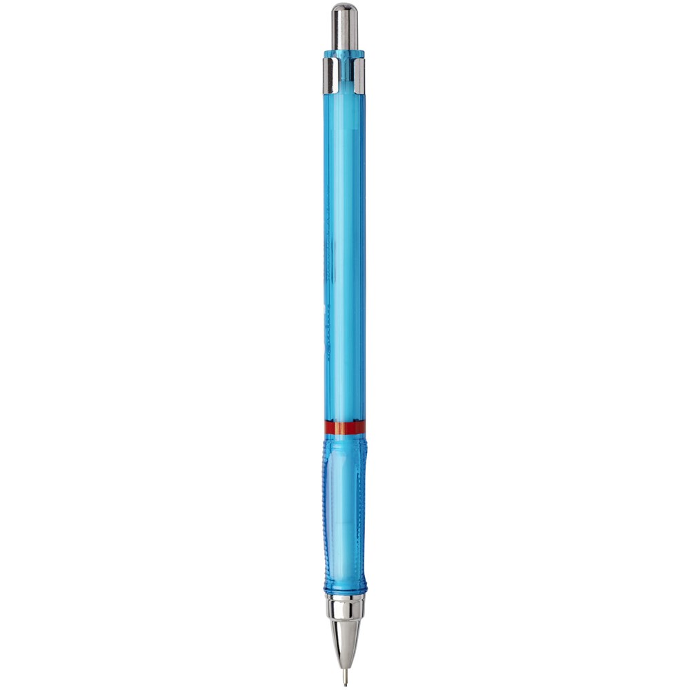 Druckbleistift zum dynamischen Schreiben und Skizzieren. Ausgestattet mit einem Metallmechanismus mit einziehbarer Mine. Dreieckiger Griff für bequemes Gefühl. Einziehbare Spitze und verfügt über hochpolymere 2B-Minen. Spitzengröße: 0,5 mm.