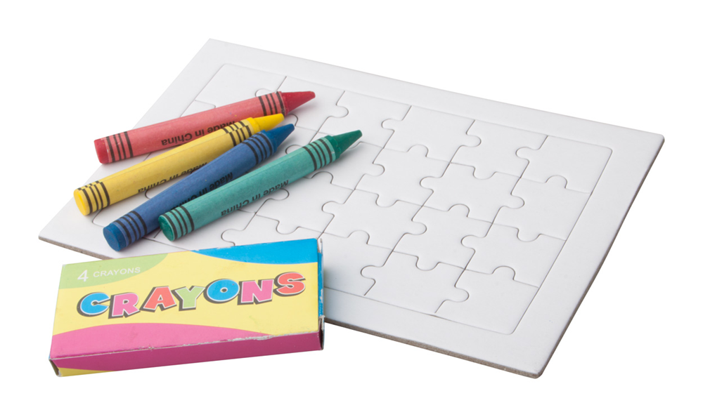 Puzzle zum Ausmalen mit 4 Wachsmalstiften.