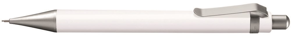 Druckbleistift (0,7mm) mit transparent gefrostetem oder gedecktem Schaft. Metalldrücker, -clip und -spitze verchromt.
