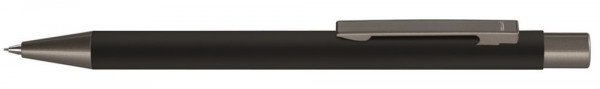 Metall-Druckbleistift (0,7mm) mit Softtouch-Schaft, Metallclip, Metallspitze, Clip und Drücker in GUN metallic. Mit Radiergummi im Drücker.
