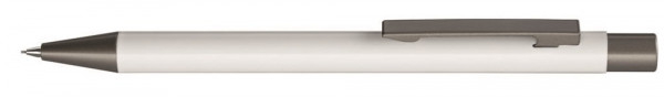 Metall Druckbleistift (0,7mm) mit glänzendem Gehäuse Metallclip, Metallspitze, Clip und Drücker in GUN metallic. Mit Radiergummi im Drücker.