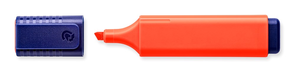 Textmarker mit großem Tintenspeicher für extra lange Markierleistung, Tinte auf Wasserbasis, INKJET SAFE - Inkjet-Ausdrucke verwischen nicht, schnelltrocknend, Drehkappe für leichtes Öffnen, Schaft in Tintenfarbe, Schoner und Abschlusskappe dunkelblau, Made in Germany