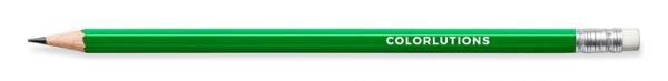 Bleistift aus zertifiziertem Holz, hexagonal, 18,5 cm lang, farbig lackiert (8 verschiedene Standardlackierungen), mit Radiertip, 1-fbg. Prägung auf 1 Fläche inklusive, Made in Germany