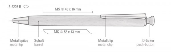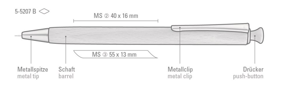 Holz-Druckblei-stift (0,7 mm) mit vernickeltem Metallclip und Metallspitze. Schaft aus schutzlackiertem PEFC-zertifiziertem deutschen Buchenholz. Passend zu Artikel 5-5200. Der Naturstoff Holz variiert sowohl in Farbigkeit des Holzes als ich in der Struktur (Maserung). Hier geht´s zum Video: https://uma-pen.com/woodenpens