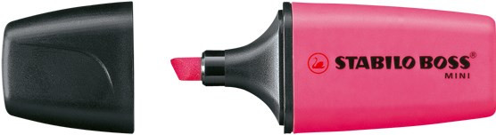KLEINE GRÖSSE – GROSSE LEUCHTKRAFT! Der Leuchtmarkierer STABILO BOSS im Mini-Format. STABILO-Qualität in Verarbeitung, Tinte und Schreibkomfort. Hohe Offenlagerfähigkeit. Erhältlich in 5 trendigen Farben.