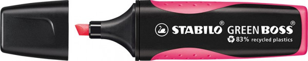 GRÜNES GEWISSEN BEI VOLLER LEUCHTKRAFT. Textmarker aus 83% recyceltem Kunststoff in klassischer STABILO BOSS Form mit weicher, ergonomischer Griffzone. 2 Strichstärken, nachfüllbare Tinte. Hohe Offenlagerfähigkeit – bis zu 4 Stunden.