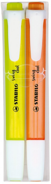 COOL & PRAKTISCH FÜR UNTERWEGS. Etui mit 2 flachen Textmarkern in Taschengröße mit praktischem Clip. 2 Strichstärken für verschiedene Arten des Markierens.