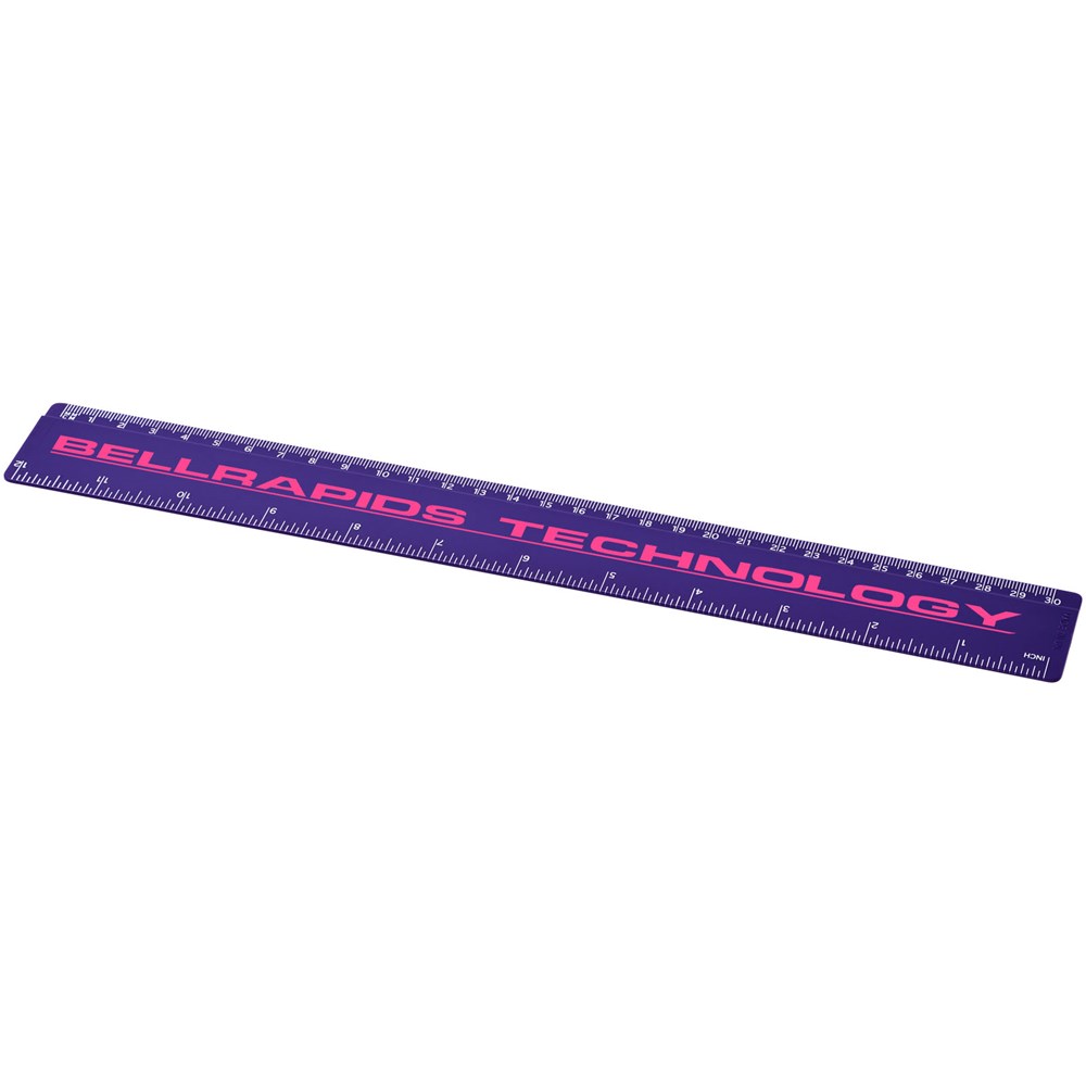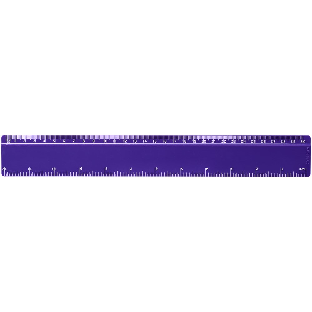 Stabiles Kunststoff Lineal mit Markierungen in Zoll und Zentimeter. Bitte beachten Sie, dass die Linealmarkierungen zusammen mit Ihrer Druckvorlage aufgedruckt werden, unveredelte Lineale haben keine Markierungen und sind blank.