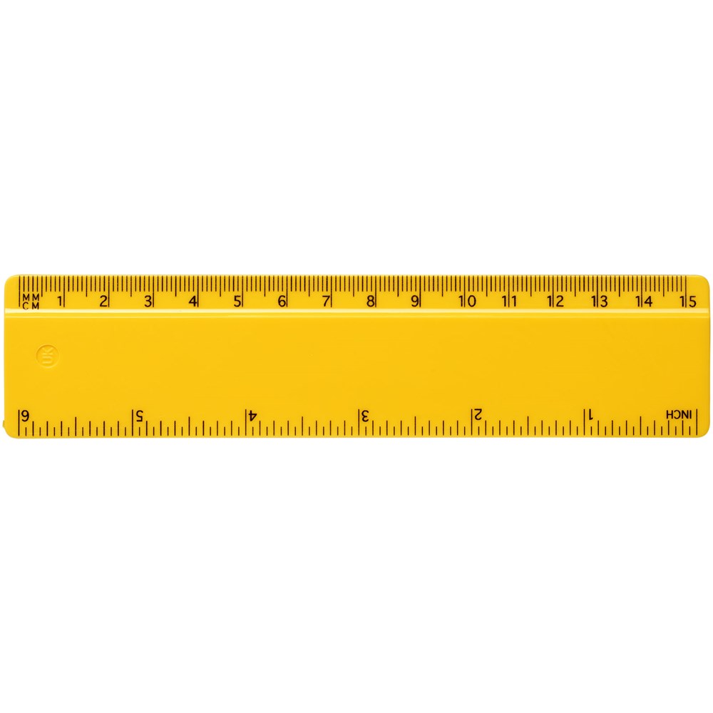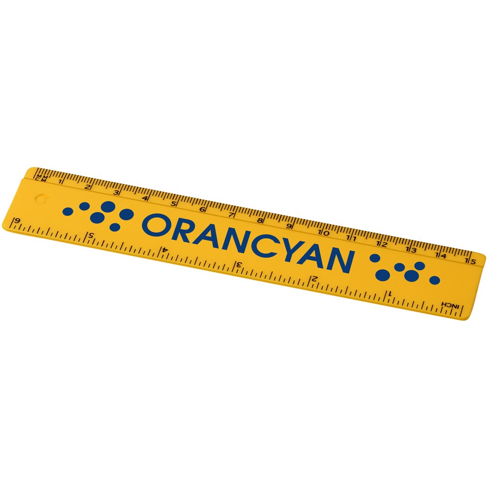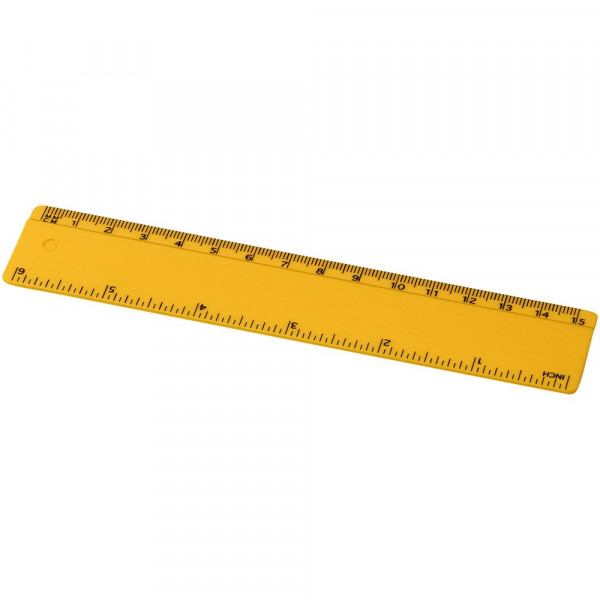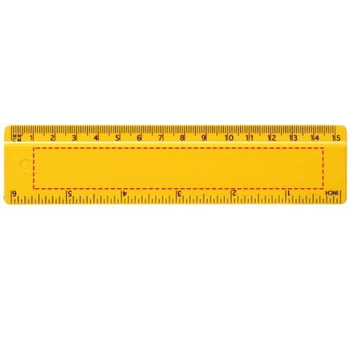Stabiles Plastiklineal. Markierungen in Zoll und Zentimeter. Bitte beachten Sie, dass die Linealmarkierungen zusammen mit Ihrer Druckvorlage aufgedruckt werden, unveredelte Lineale haben keine Markierungen und sind blank.