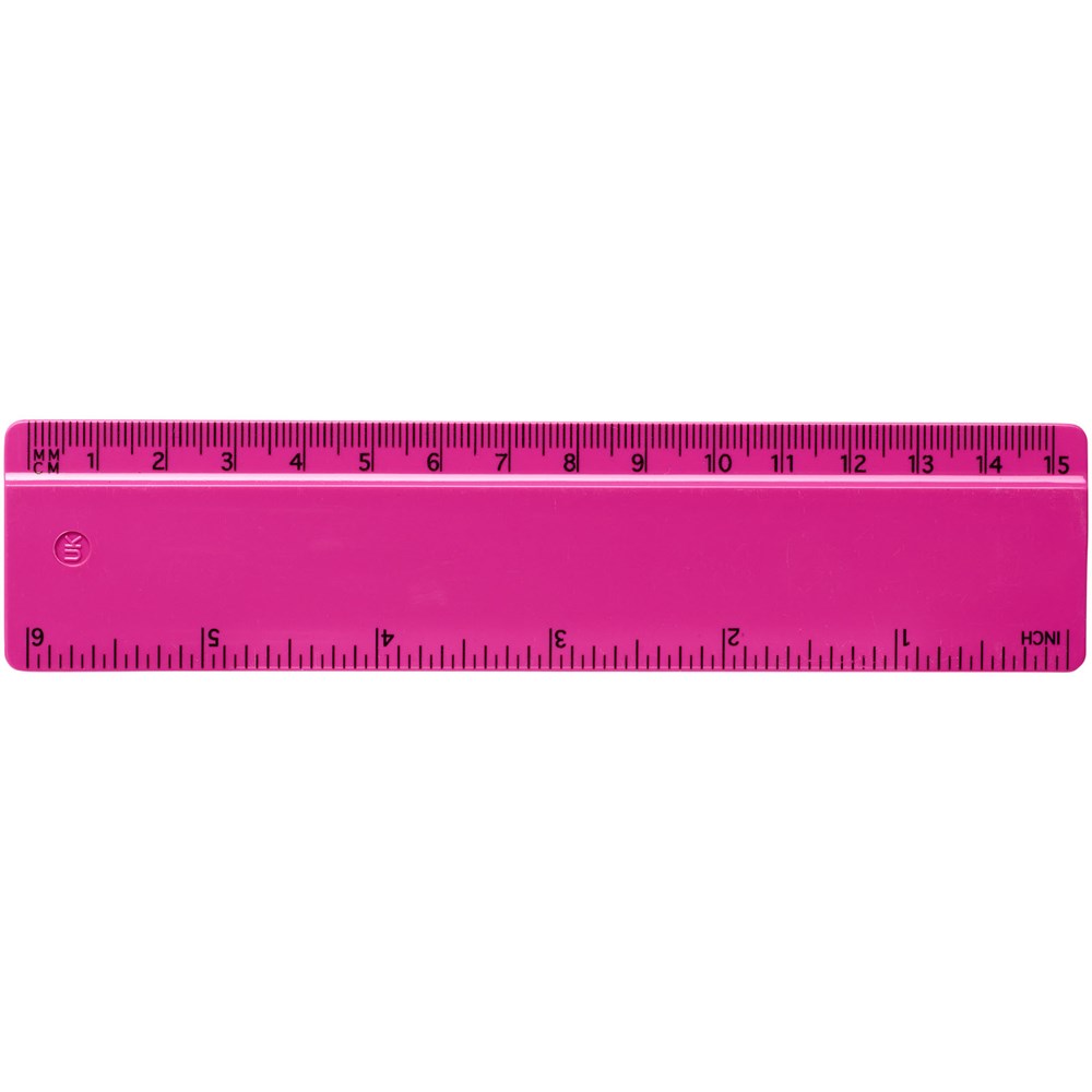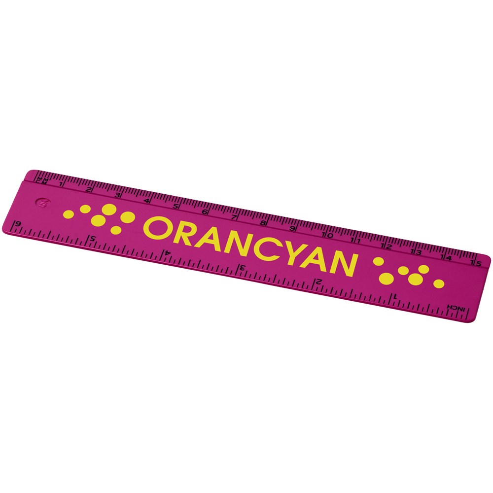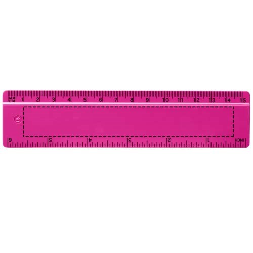Stabiles Plastiklineal. Markierungen in Zoll und Zentimeter. Bitte beachten Sie, dass die Linealmarkierungen zusammen mit Ihrer Druckvorlage aufgedruckt werden, unveredelte Lineale haben keine Markierungen und sind blank.