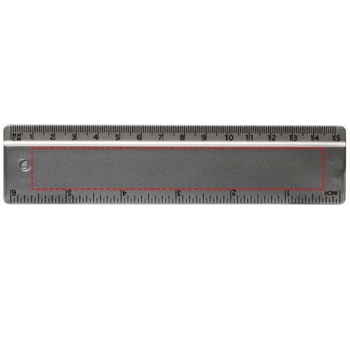 Stabiles Plastiklineal. Markierungen in Zoll und Zentimeter. Bitte beachten Sie, dass die Linealmarkierungen zusammen mit Ihrer Druckvorlage aufgedruckt werden, unveredelte Lineale haben keine Markierungen und sind blank.