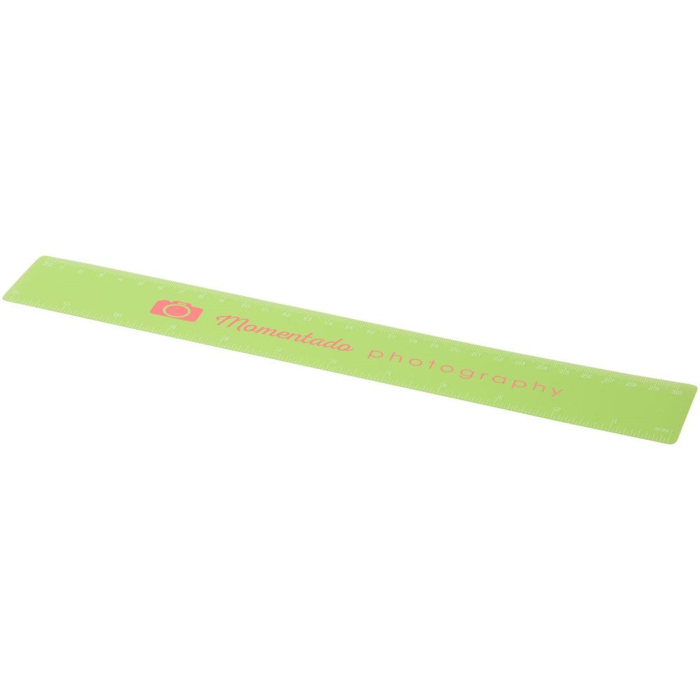 Flexibles, leichtes Plastiklineal mit Markierungen in Zoll und Zentimeter. Bitte beachten Sie, dass die Linealmarkierungen zusammen mit Ihrer Druckvorlage aufgedruckt werden, unveredelte Lineale haben keine Markierungen und sind blank.