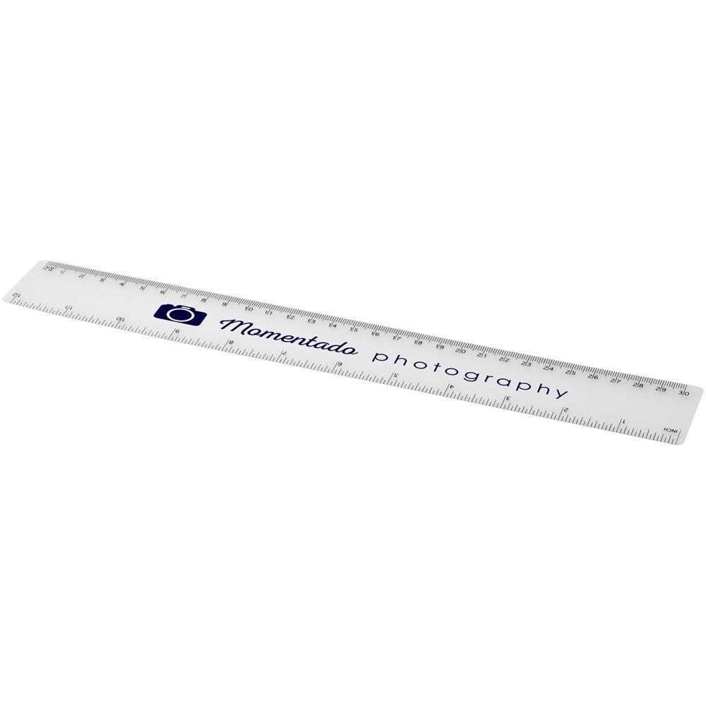 Flexibles, leichtes Plastiklineal mit Markierungen in Zoll und Zentimeter. Bitte beachten Sie, dass die Linealmarkierungen zusammen mit Ihrer Druckvorlage aufgedruckt werden, unveredelte Lineale haben keine Markierungen und sind blank.