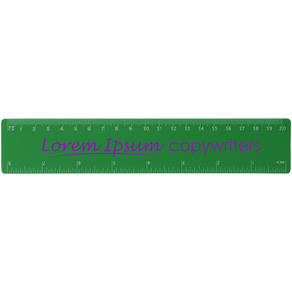 Flexibles, leichtes Kunststoff Lineal mit Markierungen in Zoll und Zentimeter. Bitte beachten Sie, dass die Linealmarkierungen zusammen mit Ihrer Druckvorlage aufgedruckt werden, unveredelte Lineale haben keine Markierungen und sind blank.