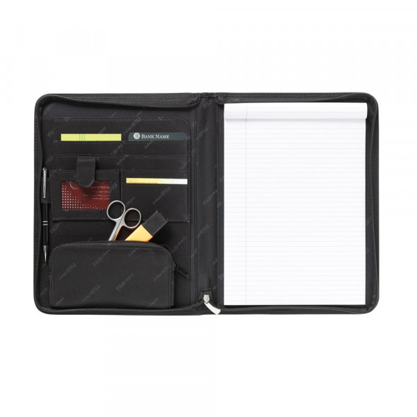 Schreib-/Dokumentenmappe aus feinem, gebundenem Leder/160 D Polyester im A4-Format. Mit diversen Einsteckfächern und Rundum-Reißverschluss. Inkl. Schreibblock und Kugelschreiber. Pro Stück in einer luxuriösen Geschenkverpackung.
