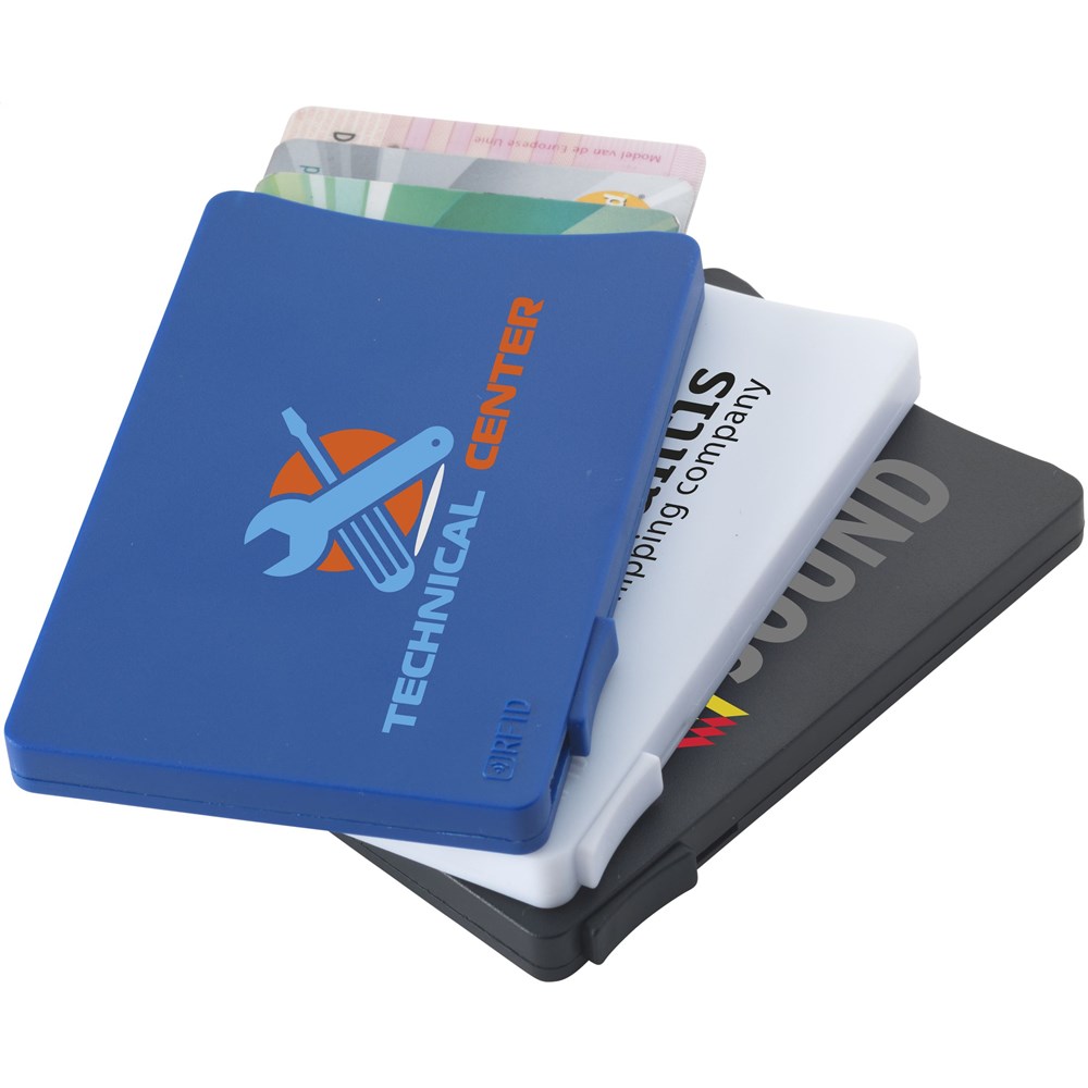 Praktischer RFID-blockierendes Multi-Kartenetui aus Kunststoff mit praktischem Schiebesystem. Schützt Karten gegen unfreiwilliges, digitales Auslesen von Ausweisen, Kreditkarten und Bankkarten. Geeignet für 3 Karten.