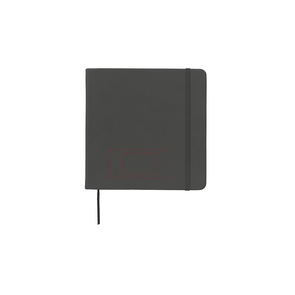 Quadratisches Notizbuch mit 96 Seiten aus cremefarbenem, liniertem Papier, gebundenem Rücken und Hardcover.