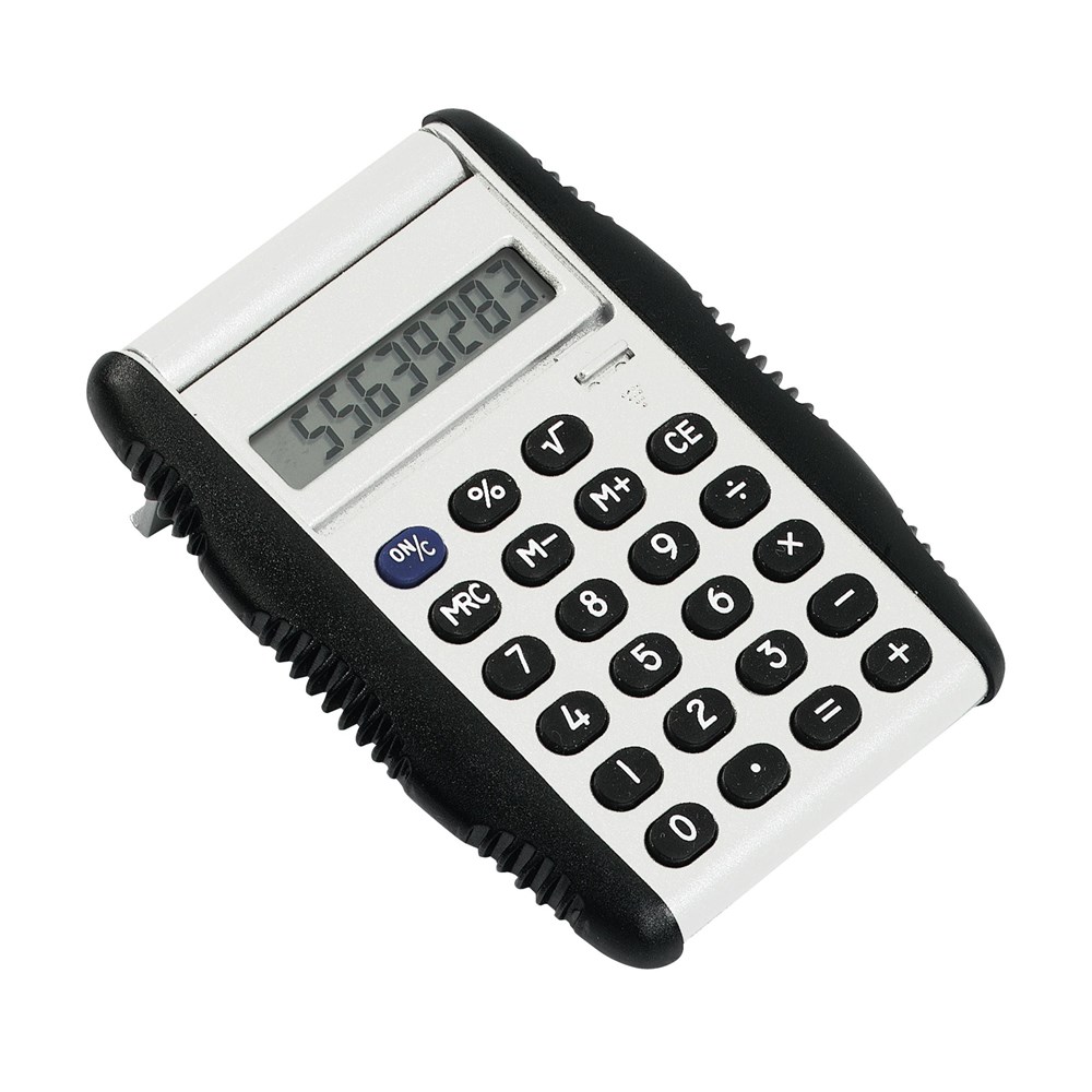 Rechner mit Gummitasten, 8-ziffrigem Display und hydraulischer Schutzkappe/Fuß. Inkl. Zellbatterie. Pro Stück in einer Verpackung.