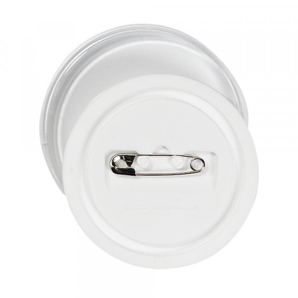Kunststoffbutton Ø 6 cm ohne Einlegeblatt. Lieferung: Die Anstecknadel wird in zwei Teilen geliefert: ein transparentes Oberteil und ein weißes Unterteil mit der Anstecknadel. Die beiden Teile werden in separaten Plastikbeuteln geliefert. Wenn Sie 500 Anstecknadeln bestellen, wird das transparente Oberteil in einem Plastikbeutel mit 500 Stück geliefert. Das weiße Unterteil mit der Anstecknadel wird in einer separaten Plastiktüte mit 500 Stück geliefert.