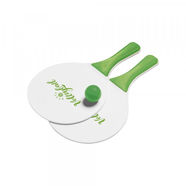 Sportliches Strandset: 2 hölzerne Schläger und ein Gummiball. mehr