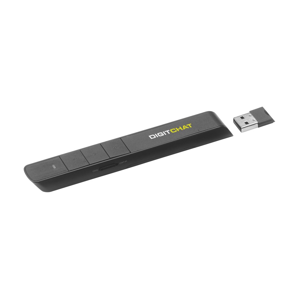 Drahtloser Laserpointer mit USB-Stecker, Bild auf/Bild ab-Funktion, rotem Laserpointer und einer Reichweite von ungefähr 10 Metern. Das perfekte Tool zur einfachen Fernsteuerung Ihrer Bildschirmpräsentation. Funktioniert mit Windows, Mac und Linux. Einschl. Batterie und Gebrauchsanleitung. Einzeln verpackt in einer Schachtel mit Magnetverschluss.