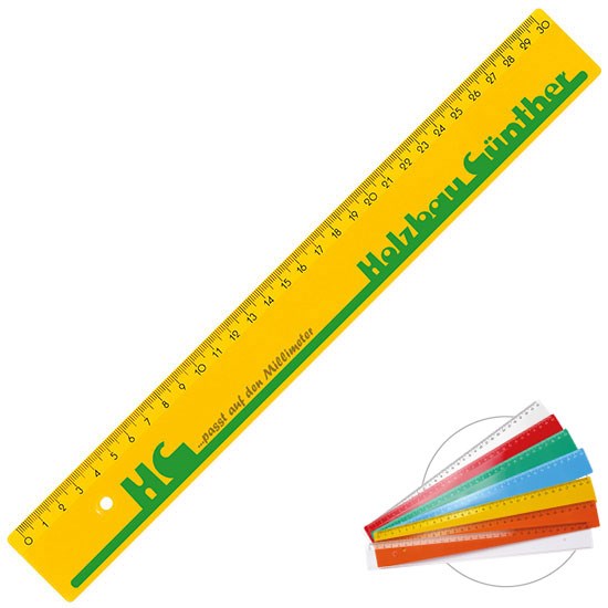 mit gedruckter 30 cm Skala auf schräg abfallender Fläche und Tuschkante; um Verkratzungen bei glasklaren Linealen zu minimieren, empfehlen wir einzelne Verpackung in Polybeutel. Aufpreis: €0,075/St., Art.Nr. 2019.