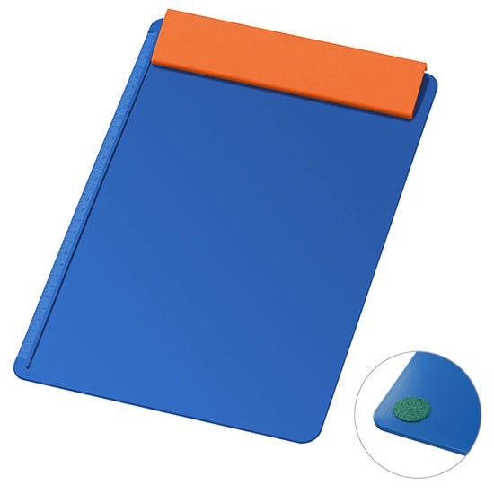 mit Klemmleiste, seitlichem Anschlag und 30 cm Skala. Ein beliebter Werbeträger, immer im Blickfeld bei Messen, Schulungen, im Büro oder Lager, mit 4 geräuschdämpfenden Filzpunkten auf der Plattenrückseite, ohne Papier.