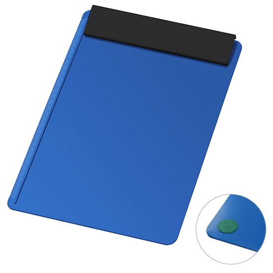 mit Klemmleiste, seitlichem Anschlag und 30 cm Skala. Ein beliebter Werbeträger, immer im Blickfeld bei Messen, Schulungen, im Büro oder Lager, mit 4 geräuschdämpfenden Filzpunkten auf der Plattenrückseite, ohne Papier.