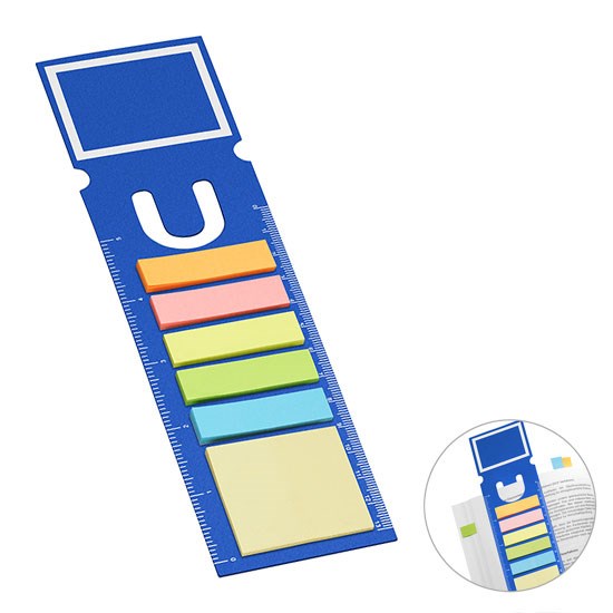 mit jeweils ca. 25 Haftnotizmarkern in 6 verschiedenen Farben (ca. 12 x 45 mm undca. 40 x 45 mm) und beidseitig gedruckter Linealskala (cm und Inch)
